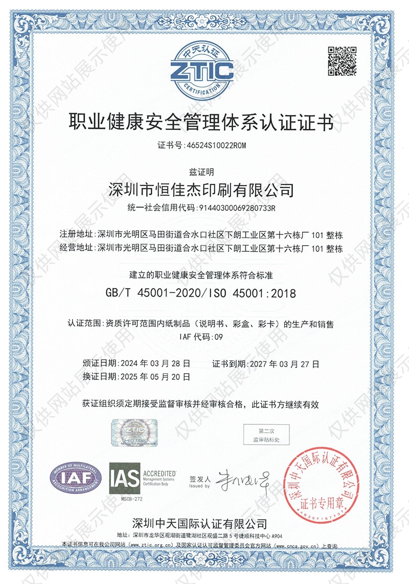 ISO45001:2018职业健康管理证书