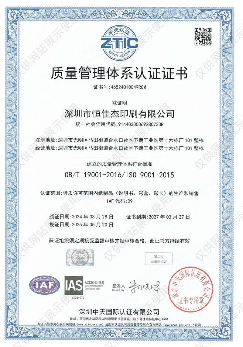 ISO9001:2015质量管理证书